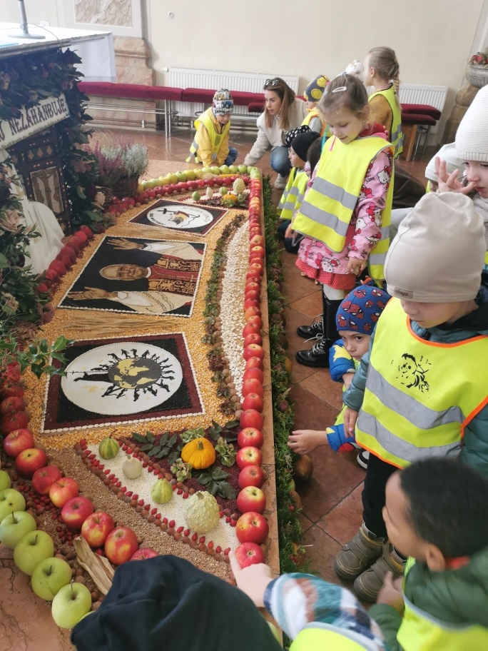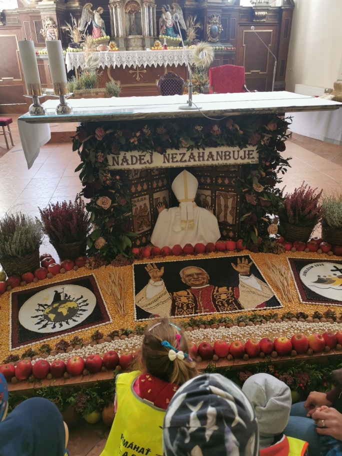 02.10.2025 16:22V rámci našich jesenných aktivít sme s deťmi navštívili výstavu aranžmánov z ovocia a zeleniny, ktorá bola pripravená v blízkom kostole v Novej Bani. Deti mali možnosť vidieť krásne a nápadité výtvory a spoznávali rôzne druhy ovocia a zeleniny. Výstava bola nielen estetickým zážitkom, ale aj príležitosťou na rozhovor o jeseni, daroch prírody a vďačnosti za úrodu.